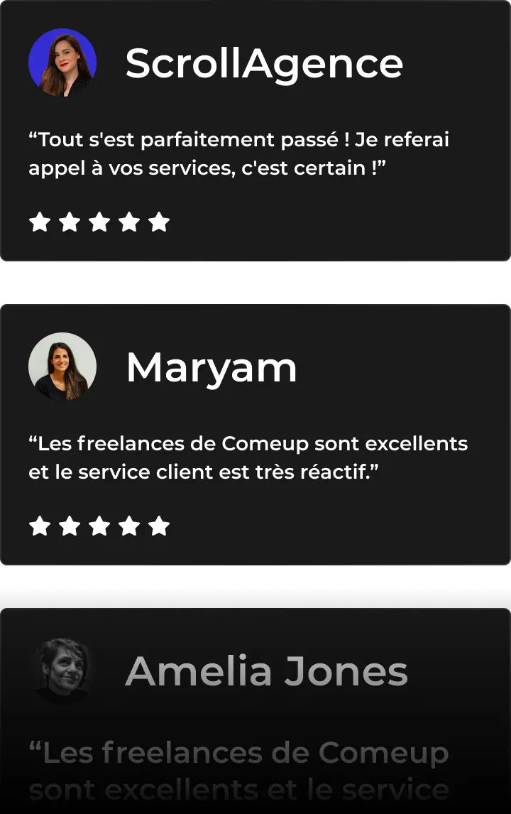 Lors d’une commande, ComeUp garde vos fonds en sécurité et ne paie le freelance qu’après votre validation
